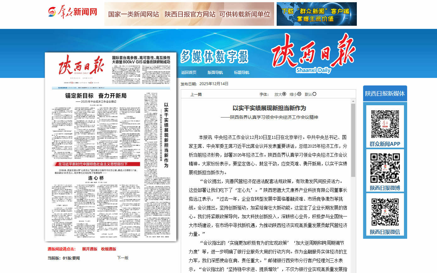 本报讯 中央经济工作会议12月10日至11日在北京举行。中共中央总书记、国家主席、中央军委主席习近平出席会议并发表重要讲话,总结2025年经济工作,分析当前经济形势,部署2026年经济工作。陕西各界认真学习领会中央经济工作会议精神。大家纷纷表示,要坚定信心、鼓足干劲,应变克难、勇开新局,以实干实绩展现新担当新作为。