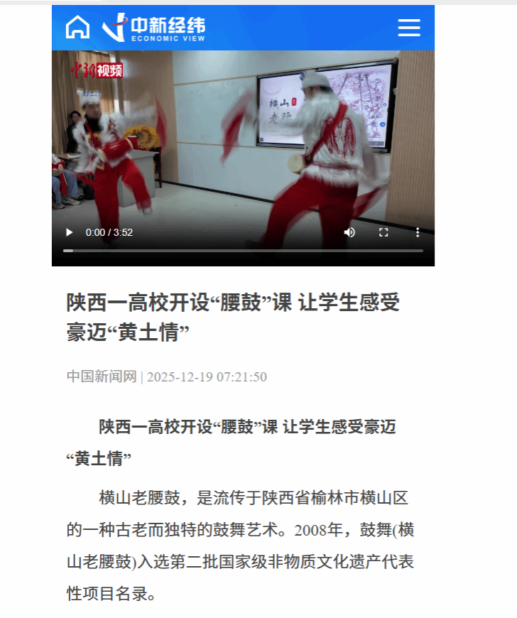 陕西一高校开设“腰鼓”课 让学生感受豪迈“黄土情”