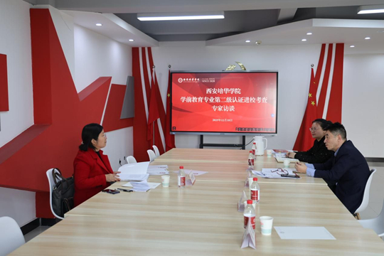 12月17日至20日,教育部师范类专业认证专家组一行五人进驻西安培华学院,对学前教育专业开展为期四天的第二级认证现场考查。此次考查由曲阜师范大学教务处原处长张良才教授担任专家组长,南宁师范大学教育科学学院李香玲教授、重庆师范大学国际汉语文化学院院长牟映雪教授、南京市中华路幼儿园原园长兼书记贾宗萍为专家组成员,秘书为陕西师范大学教师教育处干部张文杰。