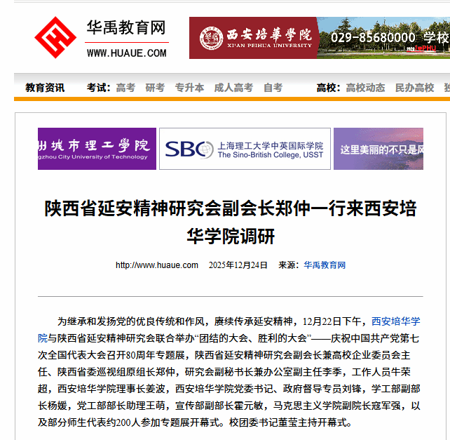 郑仲在讲话中,结合延安精神的时代内涵,阐述了高校传承红色基因、开展延安精神教育的重要意义,并对西安培华学院相关工作的开展提出了指导性建议,希望双方能进一步加强校地和校会交流合作,推动延安精神在高校落地生根。