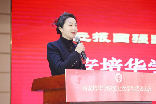 张一洋充分肯定了西安培华学院学生会近年来在思想引领、组织建设与服务同学方面取得的扎实成效。他指出,学生会组织要始终牢记“全心全意服务同学”的根本宗旨,切实发挥桥梁纽带作用,在全国学联二十八大精神指引下,持续深化改革创新,不断增强政治性、先进性、群众性。他勉励全体代表以此次大会为契机,进一步团结带领广大同学坚定理想信念、练就过硬本领,在谱写中国式现代化建设的陕西篇章中展现培华青年的先锋力量。