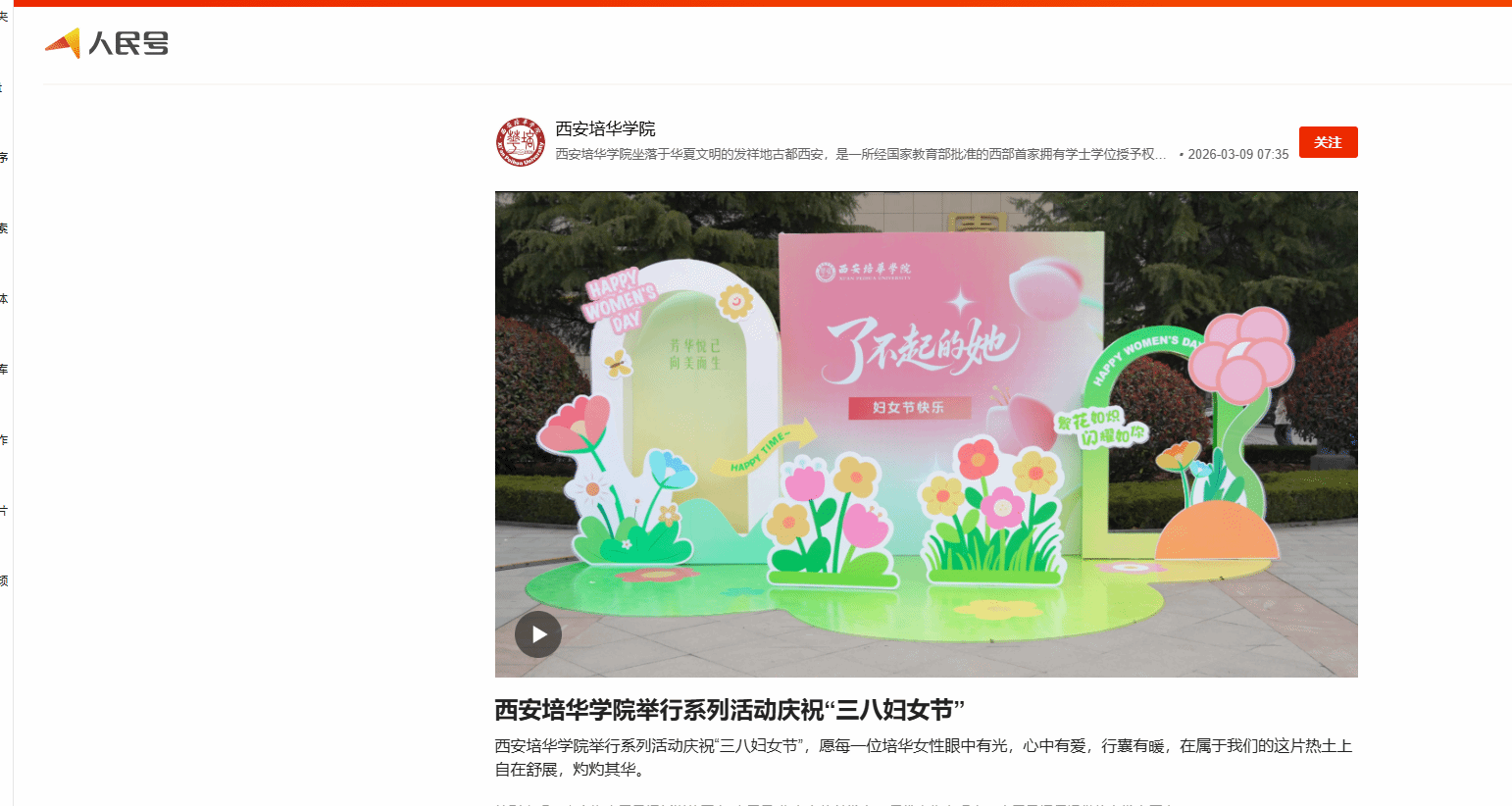 西安培华学院举行系列活动庆祝“三八妇女节”,愿每一位培华女性眼中有光,心中有爱,行囊有暖,在属于我们的这片热土上自在舒展,灼灼其华。