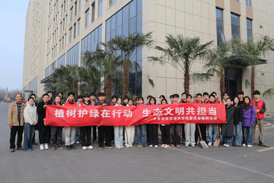 春回大地,草木萌新。2026年3月12日,西安培华学院后勤服务中心与校团委联合组织教师代表、学生志愿者、物业服务人员在第48个植树节开展义务植树活动,以实际行动践行绿色发展理念,美化育人环境。
