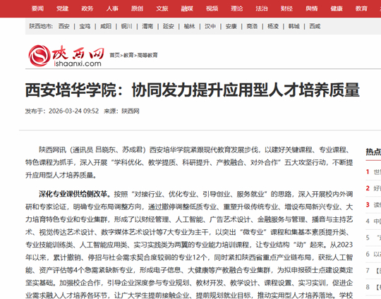 西安培华学院紧跟现代教育发展步伐,以建好关键课程、专业课程、特色课程为抓手,深入开展“学科优化、教学提质、科研提升、产教融合、对外合作”五大攻坚行动,不断提升应用型人才培养质量。