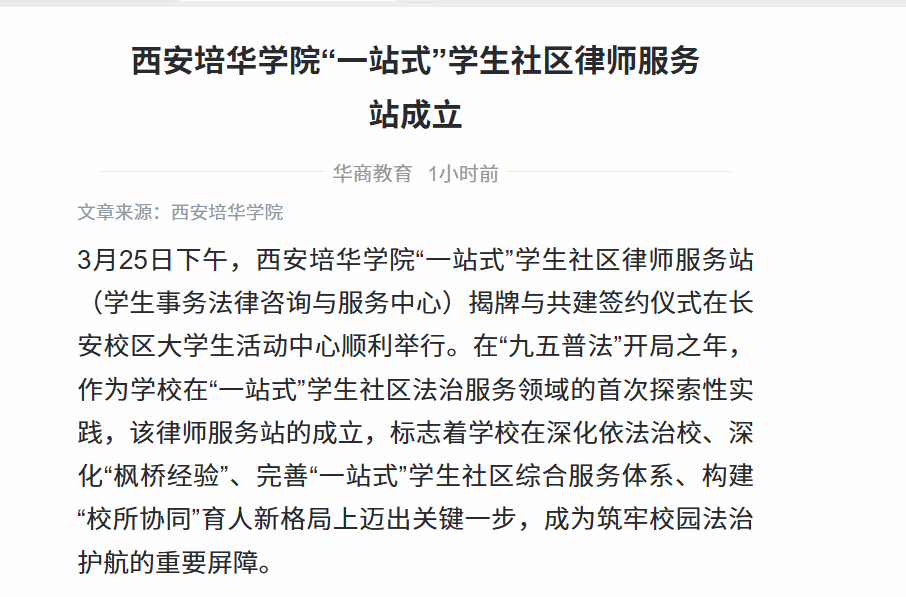 下一步,西安培华学院将依托“一站式”学生社区律师服务站,常态化开展法治主题活动,推动法治教育与专业教育、思政教育深度融合,助力构建平安和谐、法治有序的校园环境,让法治阳光照亮每一位培华学子的成长之路。