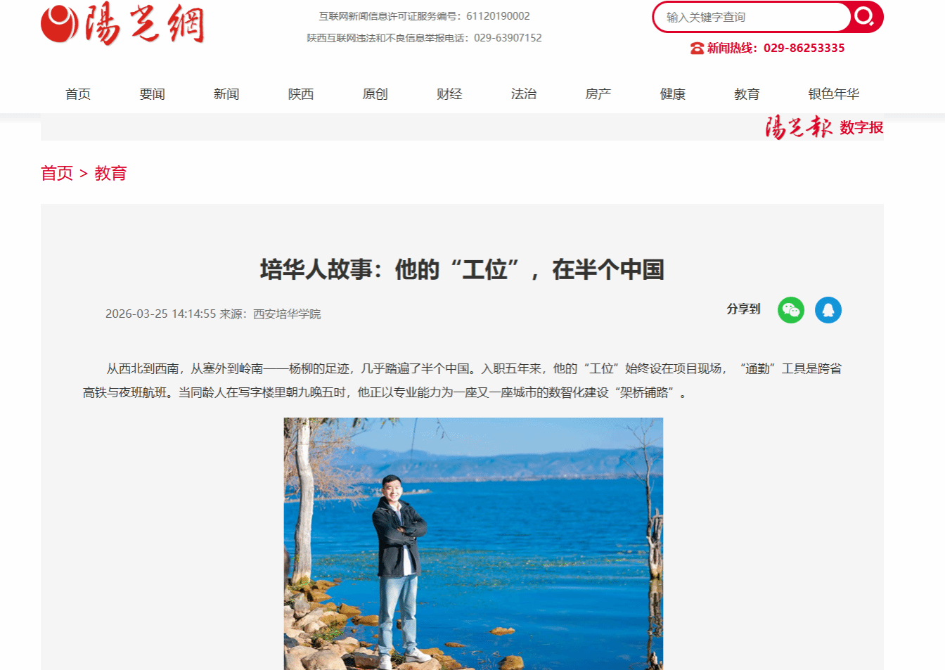 杨柳,这位2020届通信工程专业毕业生,从培华校园走出,如今已是上海邮电设计咨询研究院的项目经理。五年来,西安培华学院 他的足迹遍布甘肃、青海、山西、内蒙古、贵州、广西、海南等地……如今的他,已成长为兼具数智化项目经理与技术负责人身份的核心骨干,用脚步丈量山河,以技术回应时代需求。