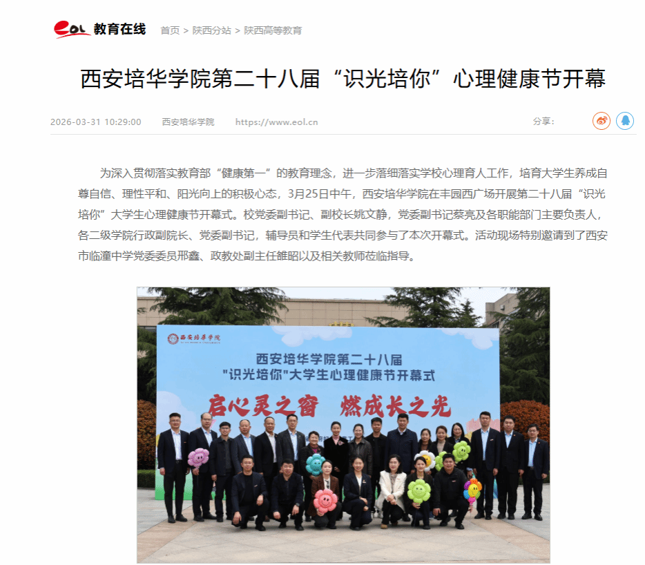 心理健康是大学生成长成才的重要基石。西安培华学院于2024年成功获批陕西省大中小幼一体化心理健康教育工作试点高校,长期以来积极推进大中小学心理健康教育协同共建。