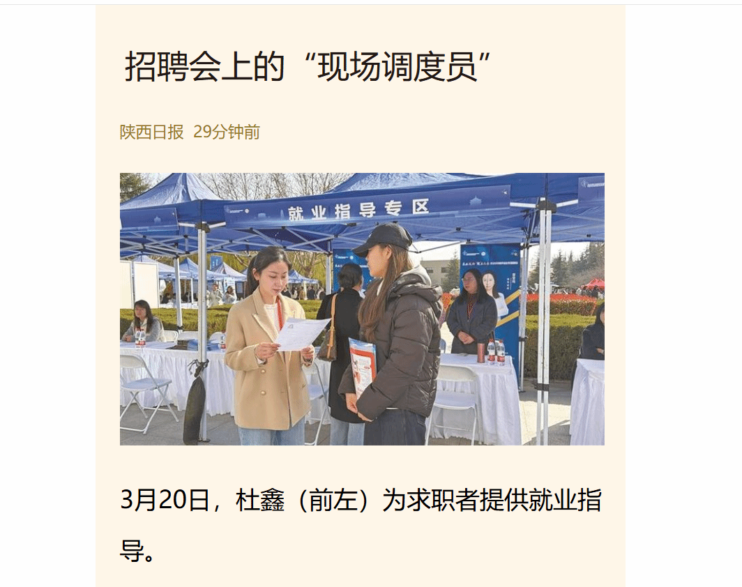杜鑫告诉记者,这份工作带给她的成就感,就藏在每场招聘会的细微之处:帮一个内向的学生修改出重点突出的简历;为一个家庭困难的学生精准解读求职创业补贴政策;告诉一个屡屡受挫的毕业生“别慌,你的专业很有前景,只是需要找到合适的舞台”。