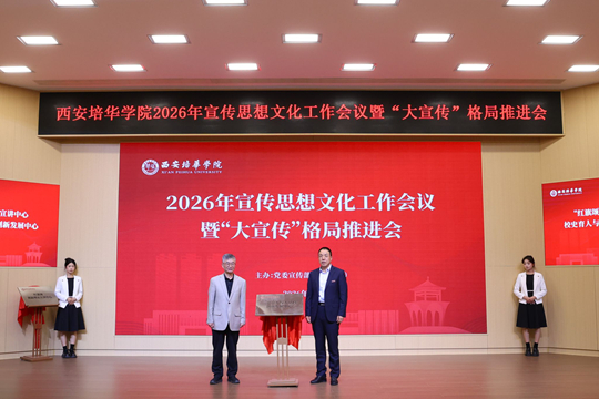 4月10日下午,西安培华学院2026年宣传思想文化工作会议暨“大宣传”格局推进会在长安校区举行。会议旨在深入学习贯彻习近平新时代中国特色社会主义思想和习近平总书记关于教育的重要论述,全面落实全国、全省宣传部长会议精神,分析研究当前宣传思想工作的形势和任务,系统部署2026年重点任务,加快构建全员参与、全域协同、全程发力的“大宣传”工作格局,为学校高质量发展筑牢思想根基、营造良好舆论氛围。