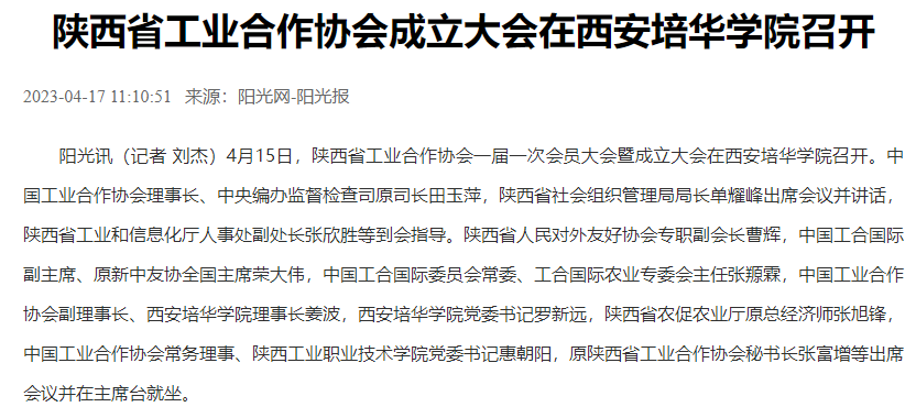 陕西省工业合作协会成立大会