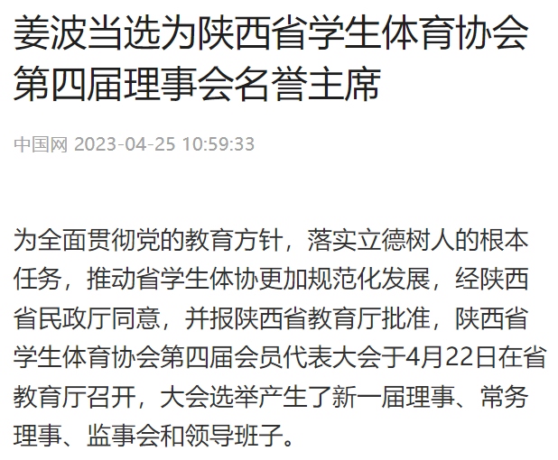 为全面贯彻党的教育方针,落实立德树人的根本任务,推动省学生体协更加规范化发展,经陕西省民政厅同意,并报陕西省教育厅批准,陕西省学生体育协会第四届会员代表大会于4月22日在省教育厅召开,大会选举产生了新一届理事、常务理事、监事会和领导班子。