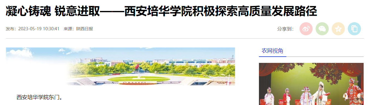 近年来,西安培华学院在构建内部治理体系、创新学校管理、提高教学水平、产教融合协同育人、助力学生创业就业等方面齐发力、共提升,积极探索学校高质量发展之路,取得了显著成效。