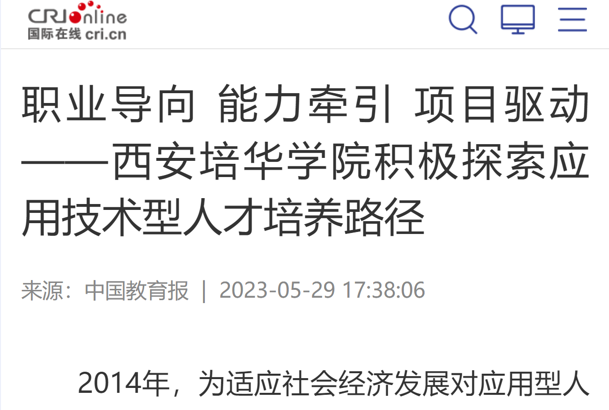 2014年,为适应社会经济发展对应用型人才的需求,西安培华学院积极响应国家大力倡导地方普通本科高校向应用型转变的号召,成为陕西省首批转型发展试点单位。多年来,学校坚持“以人为本,以德为先”办学理念,在育人实践中传承与创新“黄炎培职教理念”,依托校企共同体资源共享、协同增效的优势,大力推进应用型课程改革,积极探索“职业导向、能力牵引、项目驱动”的应用技术型人才培养路径,取得阶段性成效。