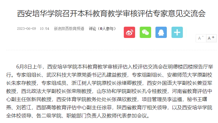 未来,西安培华学院将认真结合专家建议,在全校凝聚思想共识,强化责任担当,突出问题导向,坚持立德树人根本任务,进一步深化本科教育教学改革,确保高质量完成整改任务,整体提升教育教学质量,加快建成一所政府放心、社会满意的应用型大学。