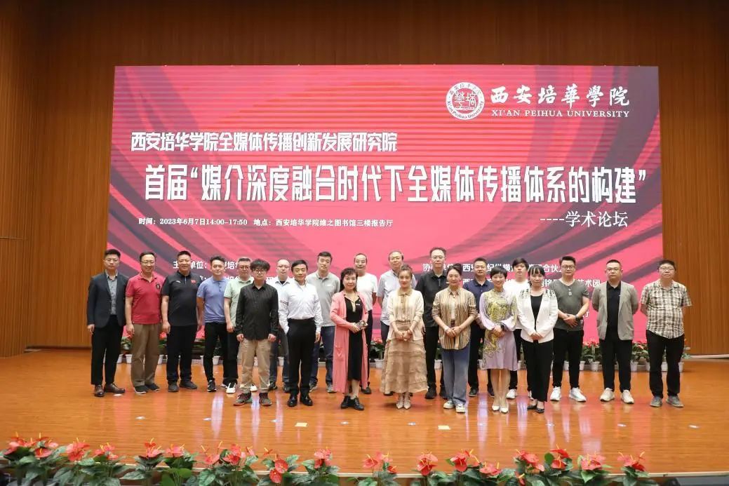 2023年6月7日14时,西安培华学院全媒体传播创新发展研究院首届学术论坛——媒介深度融合时代下全媒体传播体系的构建,在维之图书馆报告厅隆重召开。出席本次论坛的有西安培华学院理事长姜波,陕西广电融媒体集团总编辑胡劲涛,西安培华学院传媒学院院长、全媒体传播创新发展研究院院长杜耀峰,播音与主持艺术专业学科带头人、全媒体传播创新发展研究院执行院长周东华,西安培华学院科研管理中心副主任莫姣姣,23位企业、媒体、学界代表以及播音与主持艺术专业教师代表和100余名学生代表。首届学术论坛由杜耀峰院长主持。