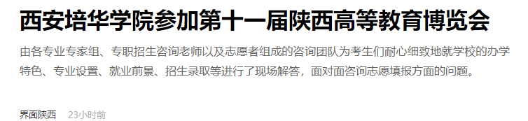 6月24日上午,由中共陕西省委教育工委、陕西省教育厅主办的第十一届陕西高等教育博览会正式开幕,本届博览会主题为“展示办学成果,促进科技成果转化,提高研究生创新实践能力,推动陕西高等教育高质量发展”,组织高等教育博览会主题展、高校科技成果展、研究生创新成果展、校企对接洽谈活动和高等学校招生咨询活动。来自省内外180余所院校(机构)参展。