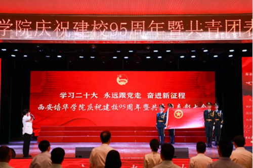 6月15日,西安培华学院庆祝建校95周年共青团表彰大会暨火炬传递仪式在学校长安校区举行。西安培华学院理事长姜波,校长李映方,党委副书记、副校长姚文静,监事会主席、党委副书记、纪委书记、工会主席徐国富及二级学院和职能部门的负责人参加了此次仪式。