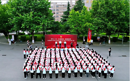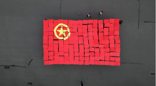来自会计与金融学院的180名培华青年摆出共青团团旗的图样,寓意在新的奋斗征程上,共青团以永不懈怠的精神状态和一往无前的奋斗姿态,在全面建设社会主义现代化国家、全面推进中华民族伟大复兴中展现更大作为。