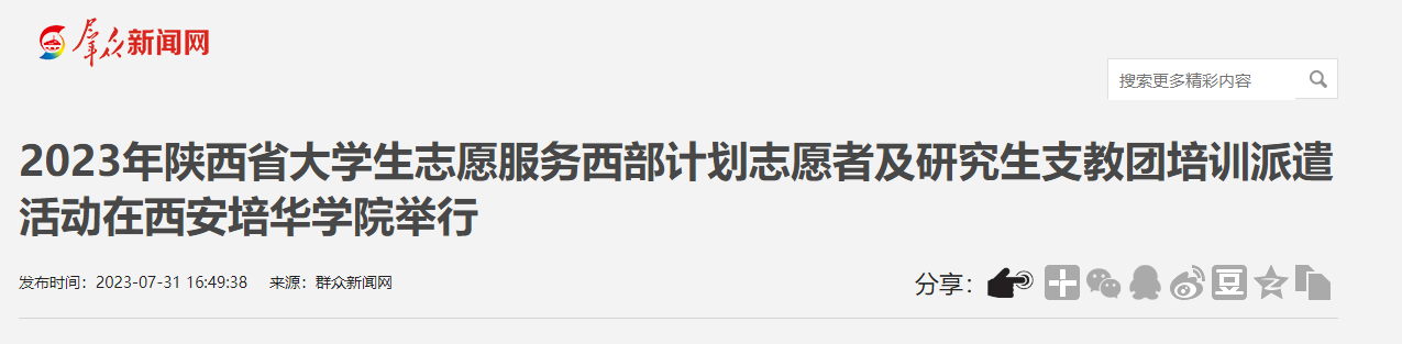 阳光讯(李旭 记者 刘杰)7月23日至7月28日,由团省委、省教育厅、省财政厅、省人力资源和社会保障厅共同主办的2023年陕西省大学生志愿服务西部计划志愿者及研究生支教团培训派遣活动在西安培华学院举行。团省委书记、省青联主席徐永胜,团省委副书记、省西部计划项目办主任陈博,团省委二级巡视员王军民和省教育厅、省财政厅、省人社厅相关负责同志出席活动,各市、县(区)项目办主要负责同志、新招募西部计划志愿者及研究生支教团成员约800余人参加活动。