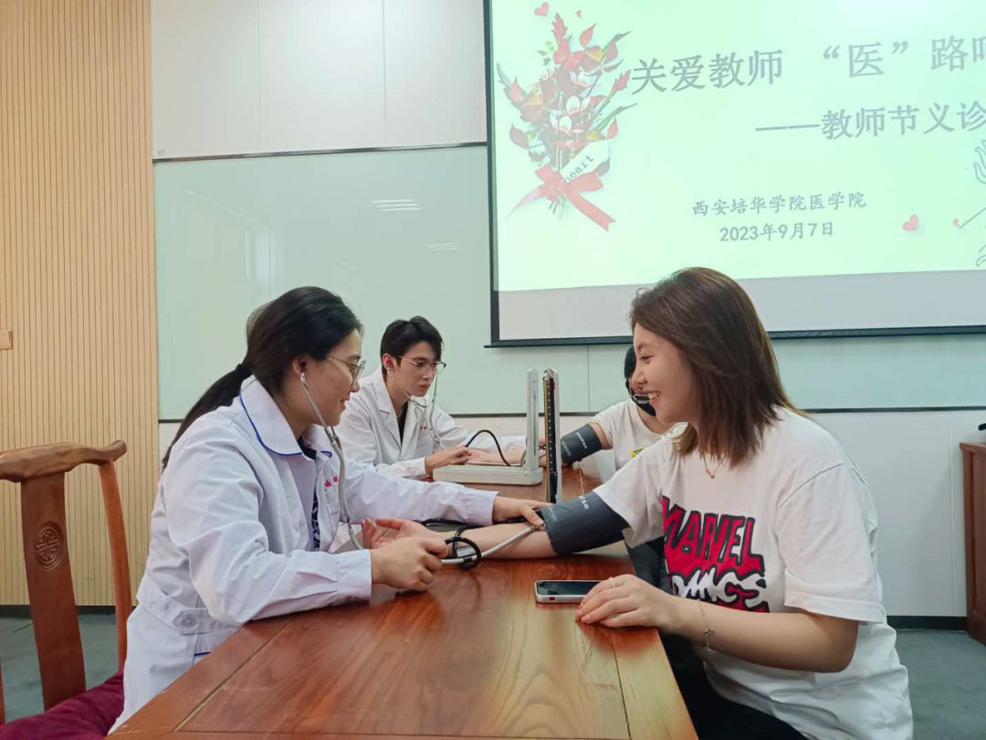 9月7日,西安培华学院医学院的义诊志愿者,在8308教室为老师们进行了中医理疗服务。志愿者们在与老师们的交谈中了解到很多老师因长期伏案工作,深受颈椎、腰椎疼痛的困扰,深切感受到了教师工作背后的辛苦与不易。活动现场气氛热烈,前来咨询、问诊的老师络绎不绝。志愿者们热情地为老师提供了量血压、中医按摩、刮痧、拔罐、艾灸等服务。
