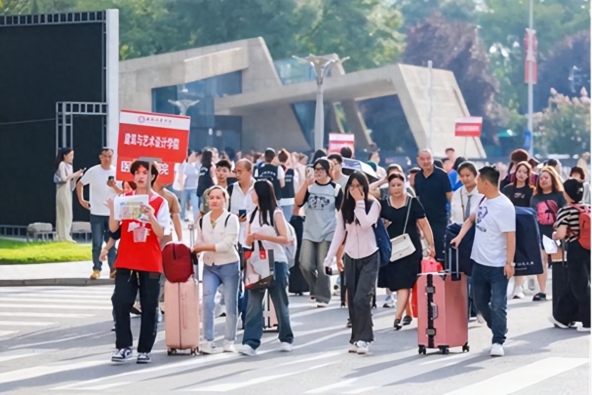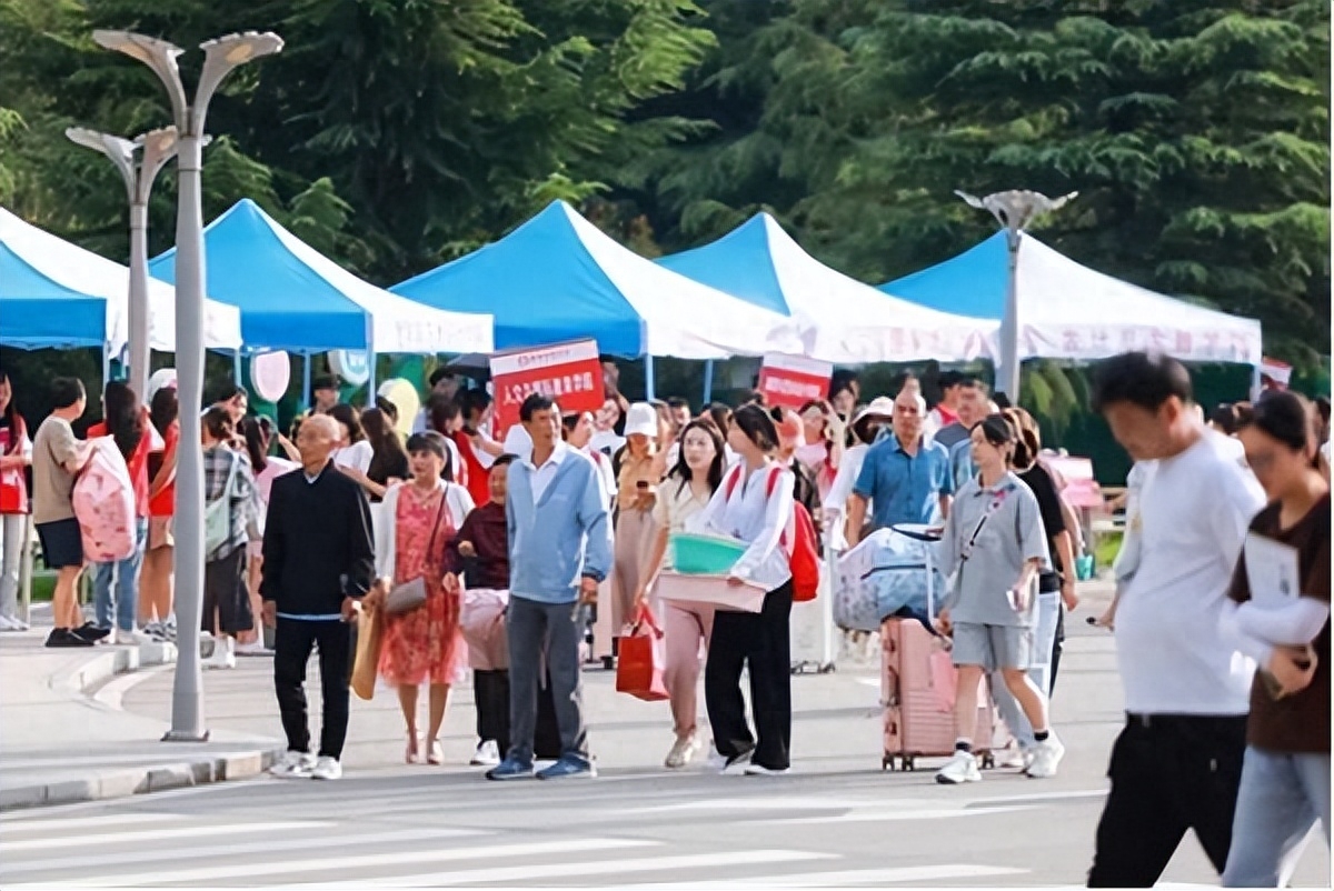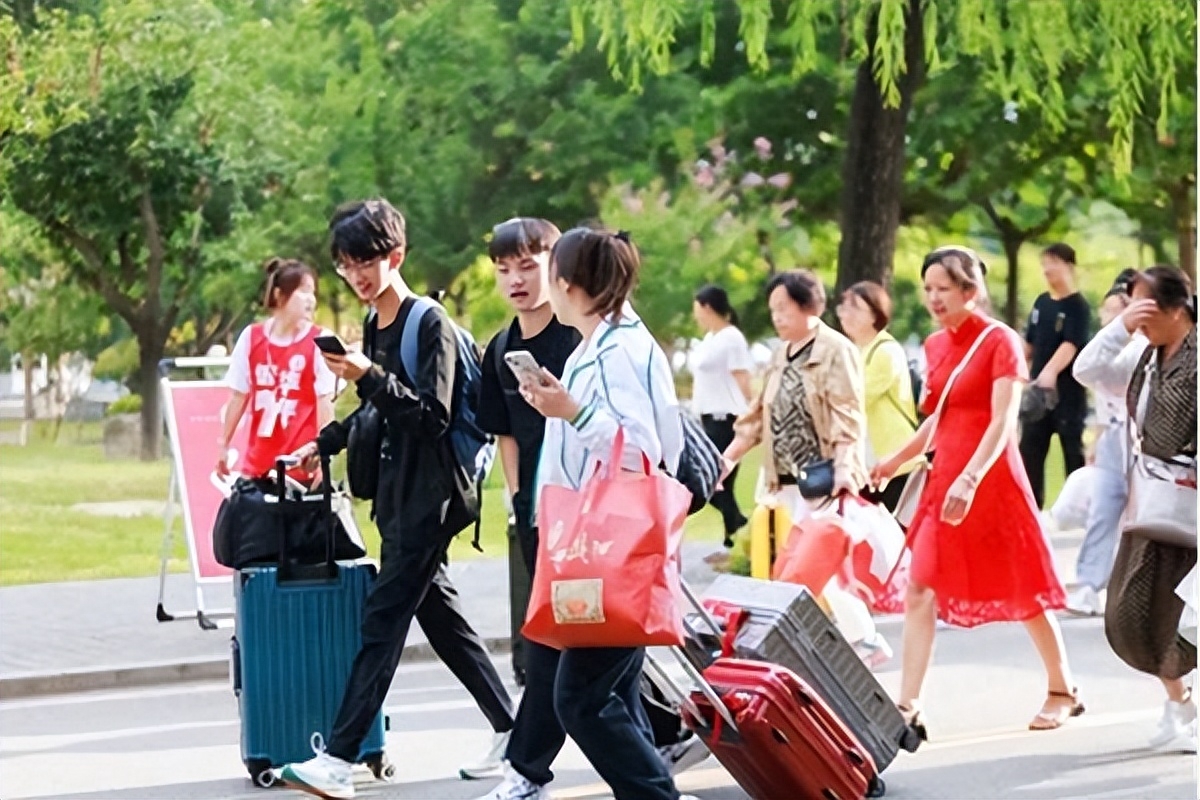 亲人们肩挑手扛,走进孩子们心仪的大学。不舍的话语藏在眼中,是担心,更是欣慰。