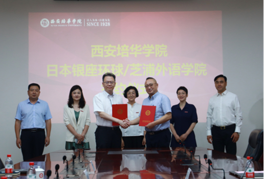 9月4日上午,日本银座环球/东京芝浦外语学院林继夫理事长、中国区代表苑来先生莅临西安培华学院交流访问,并与学校签署合作备忘录。西安培华学院理事长姜波、副校长刘越莲、人文与国际教育学院常务副院长梁蕊、培华学院职业高中校长席小武、人文与国际教育学院外语系系主任曹长春陪同参观及座谈。