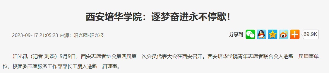 阳光讯(记者 刘杰)9月9日,西安志愿者协会第四届第一次会员代表大会在西安召开。西安培华学院青年志愿者联合会入选新一届理事单位,校团委志愿服务工作部部长王朋入选新一届理事。