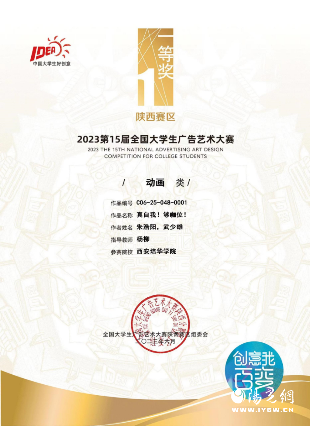 近日,第15届全国大学生广告艺术大赛落下帷幕,培华学子在全国大学生广告艺术大赛中荣获陕西省赛区一等奖2项,二等奖4项,三等奖3项,优秀奖1项。