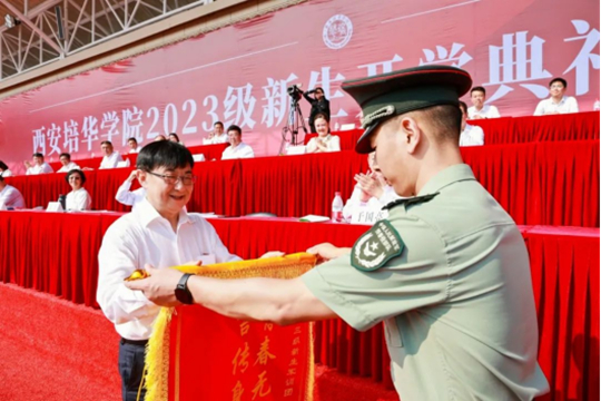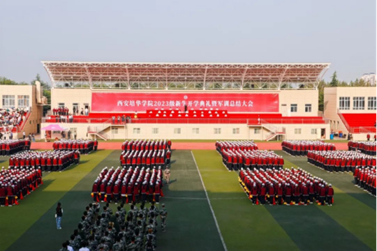 9月16日上午,西安培华学院在长安校区体育场举行2023年新生开学典礼暨军训总结大会,西安培华学院理事长姜波博士,校长李映方教授,学术委员会主席、副校长、人文与国际教育学院院长刘越莲教授,党委副书记、副校长姚文静副教授,副校长、医学院院长于国亮教授,党委副书记、纪委书记徐国富教授,财务总监薛清同志,校长助理张运良教授,校长助理姜涛同志,校长助理秦海锋副教授出席了大会,各二级学院、职能部门负责人,教师代表,学生家长代表及全体2023级新生参加了大会。