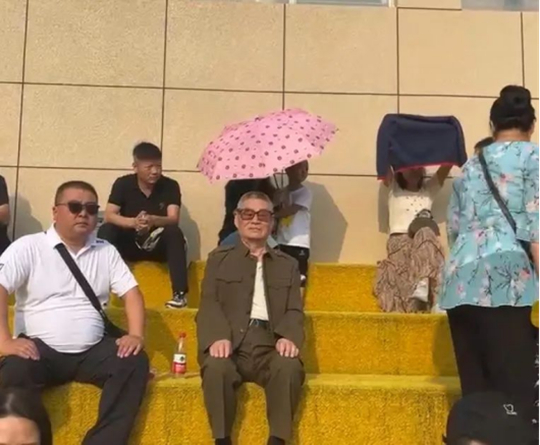一位81岁的退伍老兵来到现场观看孙子军训。杜爷爷说平时就以军人标准要求孩子,之前报名时没有送行,这次有机会就一起来看看军训汇演。
