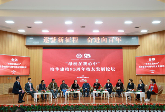 10月26日下午,“母校在我心中”培华建校95周年校友发展论坛在西安培华学院明德楼报告厅举行。老校友代表:原西安市市容委办公室主任、1955届校友王健鹏,1955届校友蔡培华;西安培华女子大学教职工代表:原西安培华女子大学党支部书记、党办校办主任、原培华职业中专校长雷福云,原西安培华女子大学教职工晁翠花;西安培华女子大学校友代表:1990届英语专业校友唐从容、1994届服装设计专业校友席伟、2001届护理专业校友陈惜、2002届英语专业校友蒙江红;西安培华学院校友代表:2011届播音与主持艺术专业校友张太岭、2012届国际经济与贸易专业校友李永超、2013届法学专业校友李涵宇、2013届汉语言文学专业校友杜连升、2021届汉语言文学专业校友邢嘉瑜;西安培华学院理事长姜波,原西安培华女子大学教职工张运良,党委宣传部部长、校友服务与发展中心主任柳雨及学生代表200余人齐聚培华,共叙佳话。本次论坛由传媒学院教师尚勇主持。