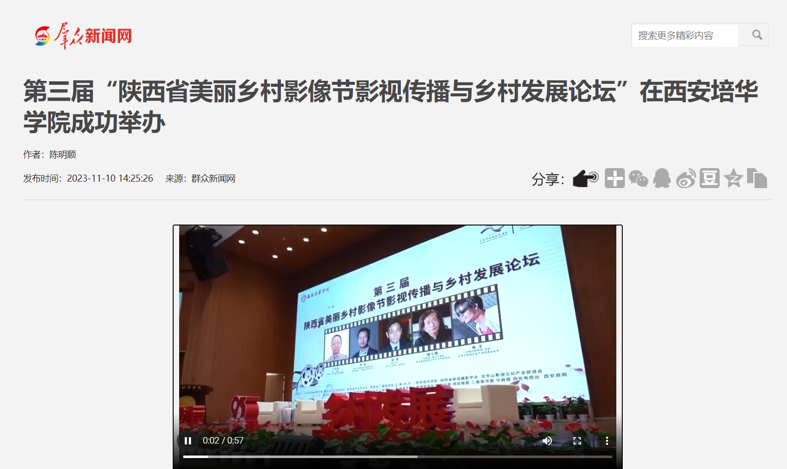 为了共建中国美丽乡村,展现影视传播风采,11月8日上午,由美丽乡村国际影像节组委会、陕西西诺创意文化产业发展中心主办,西安培华学院、陕西省新闻摄影学会和定军山影视文化产业促进会承办的第三届陕西省“美丽乡村影像节影视传播与乡村发展论坛”在西安培华学院维之图书馆报告厅圆满举行。