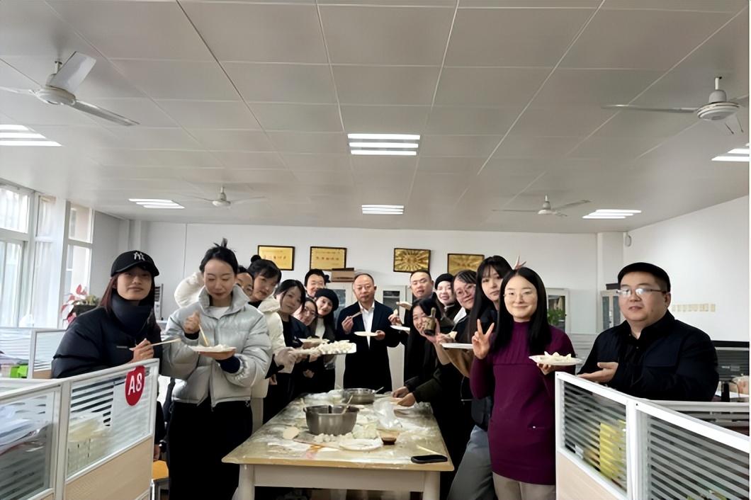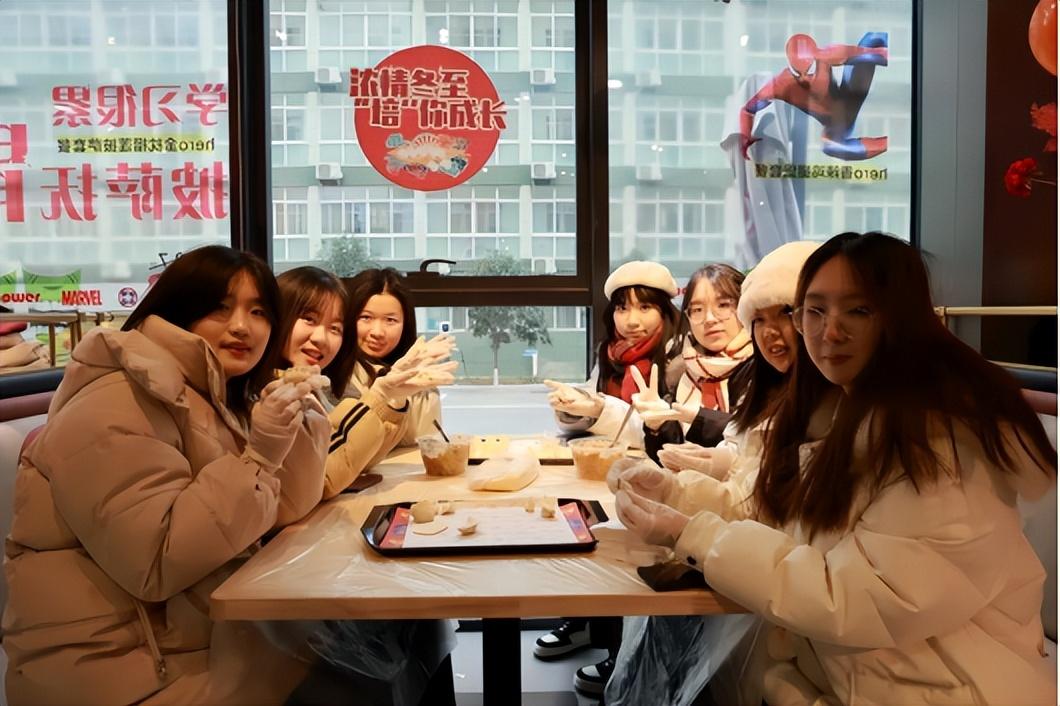 人文与国际教育学院的师生,欢欢喜喜吃饺子,迎冬至,“保护”自己的耳朵。