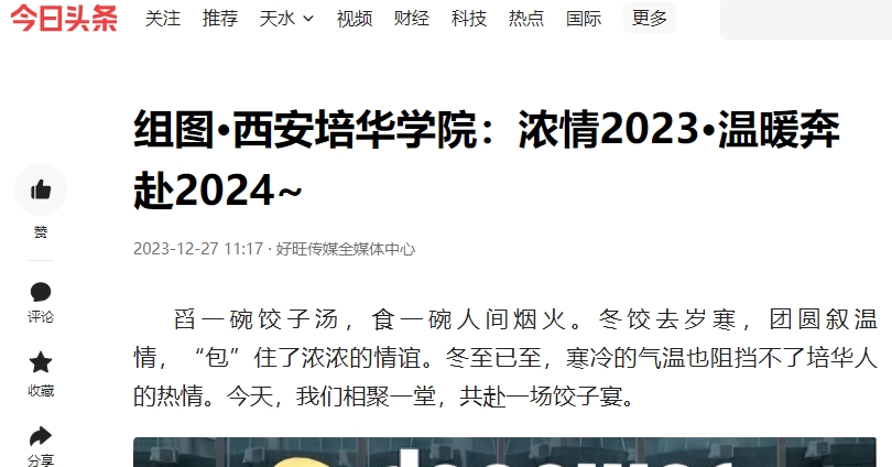 舀一碗饺子汤,食一碗人间烟火。冬饺去岁寒,团圆叙温情,“包”住了浓浓的情谊。冬至已至,寒冷的气温也阻挡不了培华人的热情。今天,我们相聚一堂,共赴一场饺子宴。