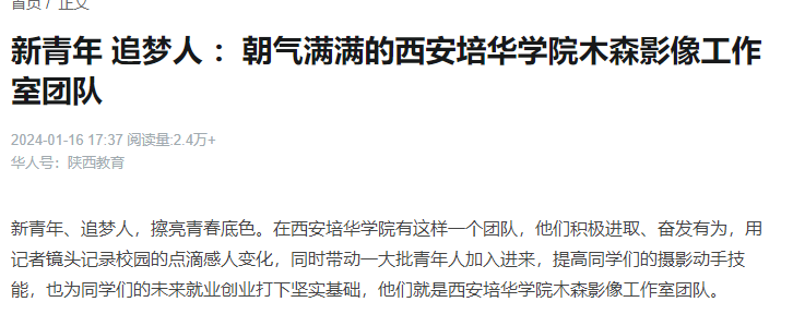 新青年、追梦人,擦亮青春底色。在西安培华学院有这样一个团队,他们积极进取、奋发有为,用记者镜头记录校园的点滴感人变化,同时带动一大批青年人加入进来,提高同学们的摄影动手技能,也为同学们的未来就业创业打下坚实基础,他们就是西安培华学院木森影像工作室团队。
