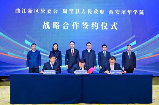 3月14日,曲江新区、周至县与西安培华学院签署合作协议,三方将在楼观生态文化旅游度假区内,合作共建西安楼观文教旅融合产业园项目。西安市人民政府副市长孟浩,西安曲江新区管委会党工委书记、主任王庆华,西安市文旅局党组成员、副局长王晓,西安曲江新区管委会党工委委员、副主任常文芝,周至县委副书记、县长段军利,周至县委常委、县政府党组副书记、副县长王小勇,周至县人民政府副县长刘文博,西安曲江楼观生态文化旅游度假区管理办公室党委书记孟书魁,学校理事长姜波,校长李映方、党委书记刘锋、副校长罗新远、于国亮等出席签约会。