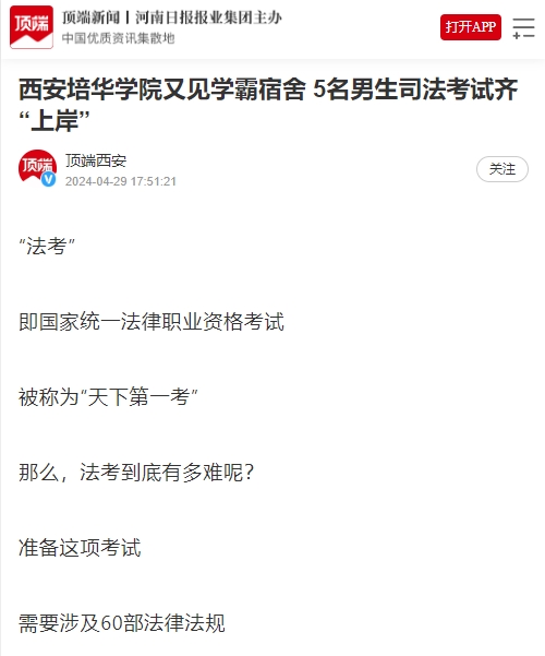 亮眼的成绩单不是偶然所得,是法学院长期不懈抓学风、教风的结果,离不开学院对提升学生专业素养的不懈追求。法学专业是陕西省“一流专业”建设点,在人才培养上,法学专业贯彻“理论+实践”“专业法律+学科渗透”的人才培养模式,将案例教学贯穿于人才培养全过程,突出应用型、实践性,被陕西省教育厅批准为“应用型人才培养模式创新实验区”,2021年法学专业开展的《以职业能力为导向的应用型法律人才培养实践》项目被中国高等教育学会认定为“校企合作 双百计划”典型案例。