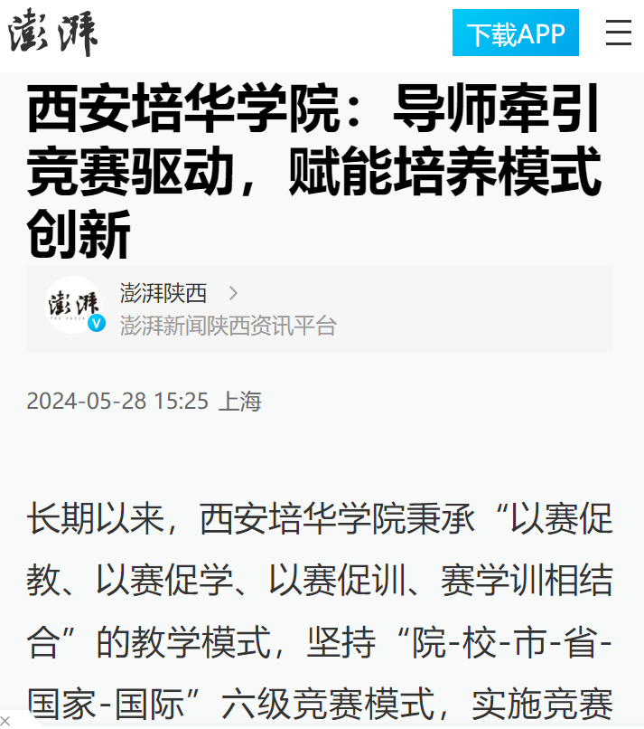 长期以来,西安培华学院秉承“以赛促教、以赛促学、以赛促训、赛学训相结合”的教学模式,坚持“院-校-市-省-国家-国际”六级竞赛模式,实施竞赛与课程相结合、竞赛与教改相结合、竞赛与创新相结合,打通“课赛融通、产教融合、科教融汇”协同实践育人体系,营造良好的育人环境,提高大学生创新意识、创新思维,助力学生全面发展。