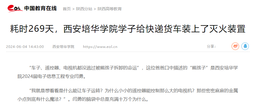 “车子、遥控器、电视机都没逃过被熊孩子拆卸的命运”,这位爸爸口中描述的“熊孩子”是西安培华学院2024届电子信息工程专业闫勇。