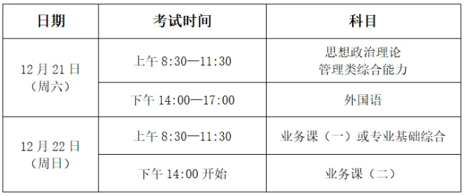 注:部分自命题科目考试时间超过3小时,请相关科目考生关注考试时间。