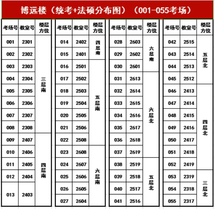 西安培华学院考场分布图