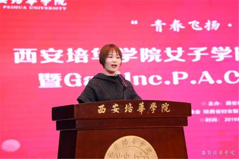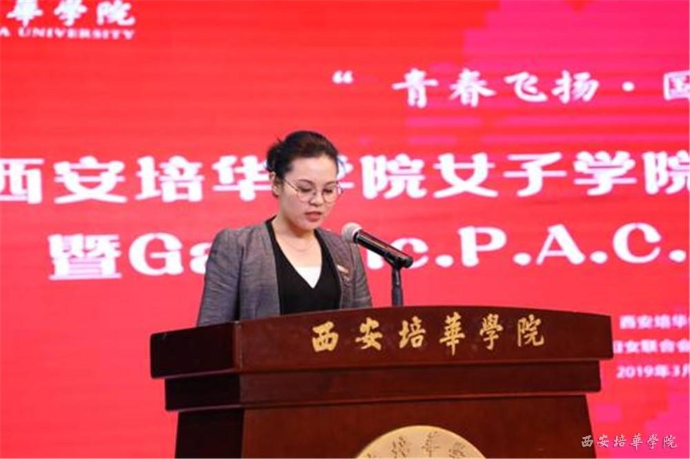 理事长姜波致欢迎辞,他对省妇联、省社科联领导莅临我校指导工作表示热烈的欢迎。对Gap lnc.P.A.C.E.项目在西安培华学院落地表示衷心的祝贺!他讲到,培华学院一直注重女性教育,积极传承和弘扬女性教育精神,致力于打造女性教育品牌。他表示,新时代培养女性的综合素质尤为重要,希望女子学院的同学们在未来的生活中、工作中拥有较强的职业竞争力、创新力,以巾帼不让须眉的状态紧跟时代的步伐,创造属于自己灿烂的美好人生。
