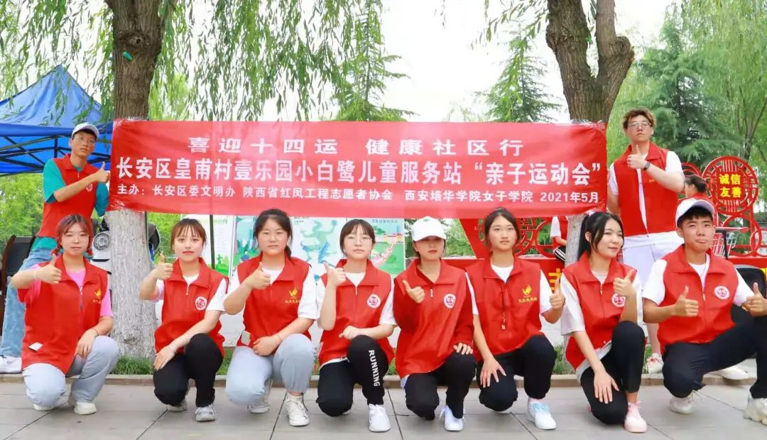 为响应陕西省委文明委“提升文明素养 喜迎全运盛会”的行动倡议,发扬积极向上的体育精神、传承为爱奉献的志愿者精神,5月22日,由长安区委文明办、陕西省红凤工程志愿者协会、西安培华学院女子学院联合主办的“喜迎十四运,健康社区行”亲子运动会,在西安市长安区皇甫村一乐园小白鹭儿童服务站开展。活动得到了长安区委宣传部、王曲街道办、黄甫村党支部村委会、陕西省志愿服务联合、西安培华学院马克思主义学院、体育学院、大学生艺术团等多单位多部门的大力支持。