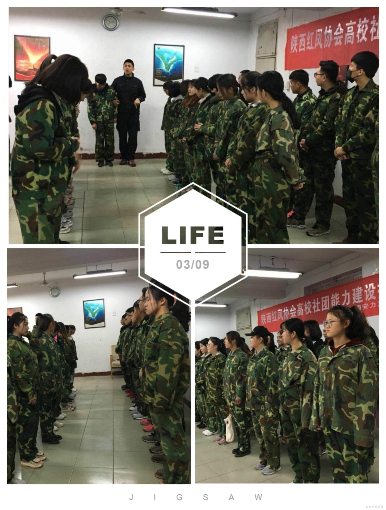 2018年3月18日,由陕西省红凤工程志愿者协会联合西安力为拓展培训有限公司,共同组织陕西多所高校进行志愿者拓展训练,其中西安交通大学、西北工业大学、西安电子科技大学、陕西师范大学,西安工程大学及西安培华学院等6所高校的团队拓展培训在鄠邑区太平峪进行,我校女子学院学生代表参加了此次拓展训练。