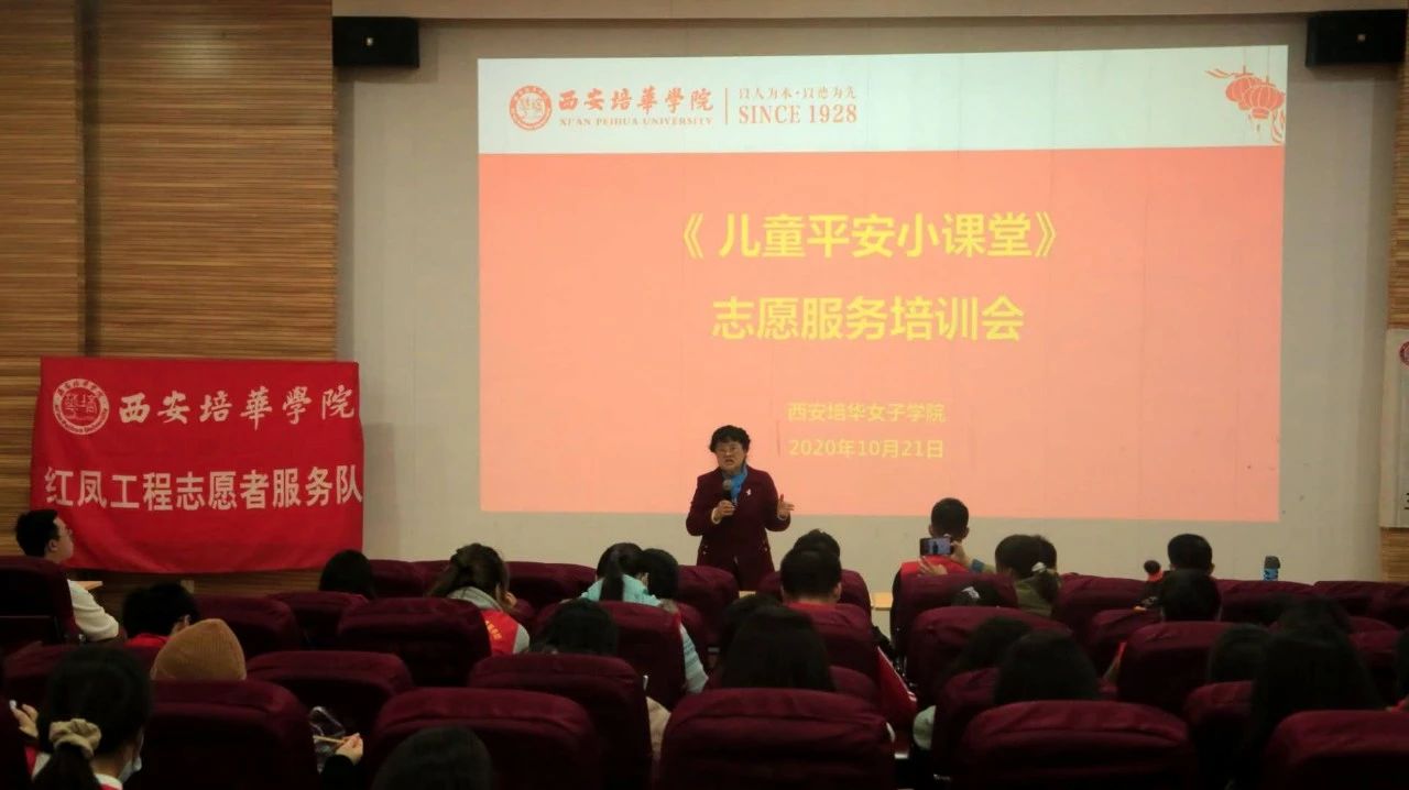 2020年10月21日晚7:00,在格物楼一楼J101教室,西安培华学院女子学院有幸邀请到“壹基金儿童平安计划”讲师闫凯,为女子学院三秦巾帼志愿服务队志愿者开展《儿童平安课堂》培训。