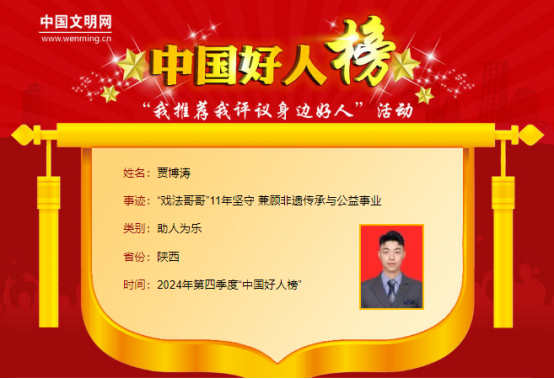 贾博涛,一名在公益道路上,坚守了11年的青年非遗传承人,他创新开展惠民演出,倾心帮扶困难儿童,被资助的孩童亲切地称为“戏法哥哥”,心系家乡发展,展现了新时代青年人的责任与担当。