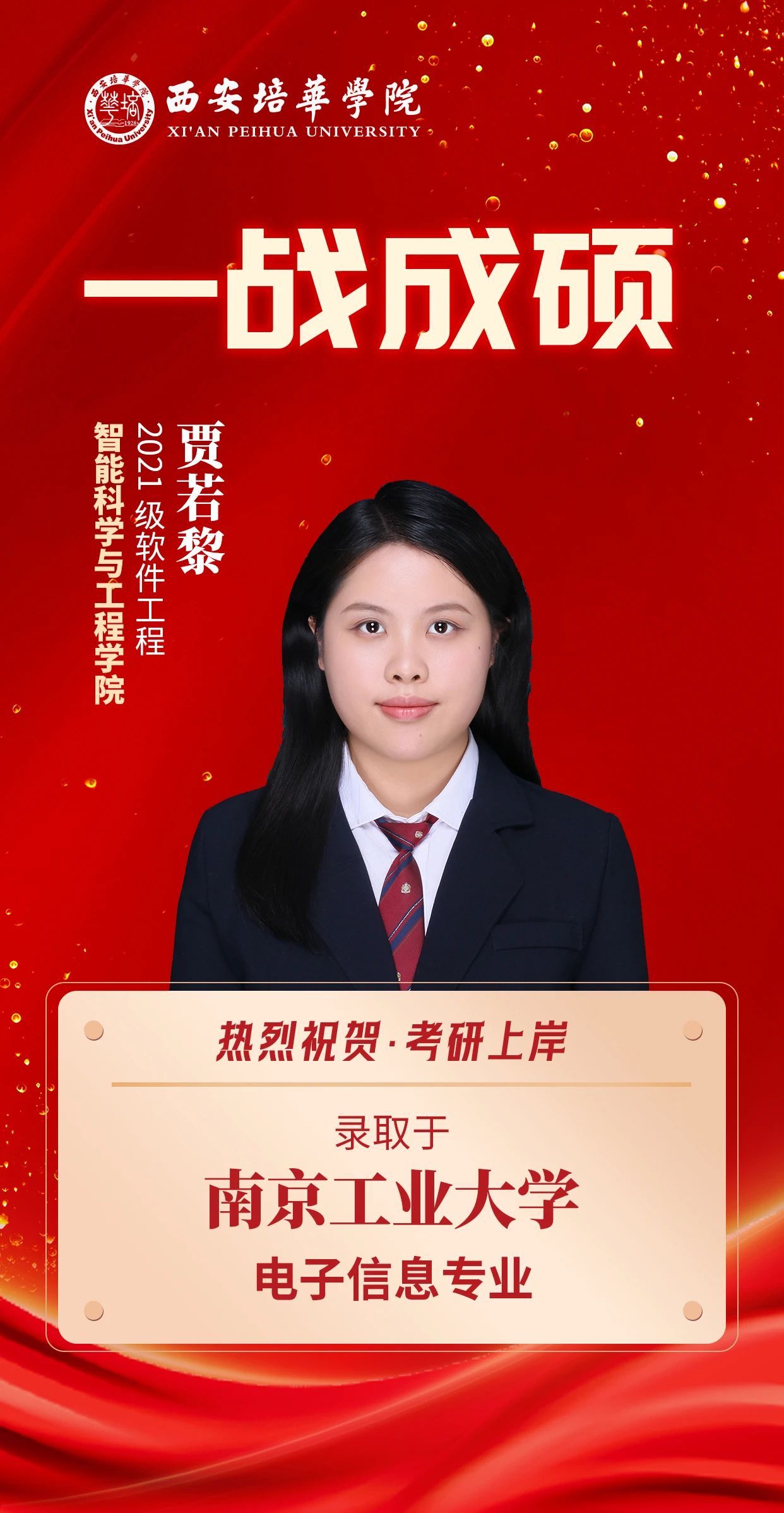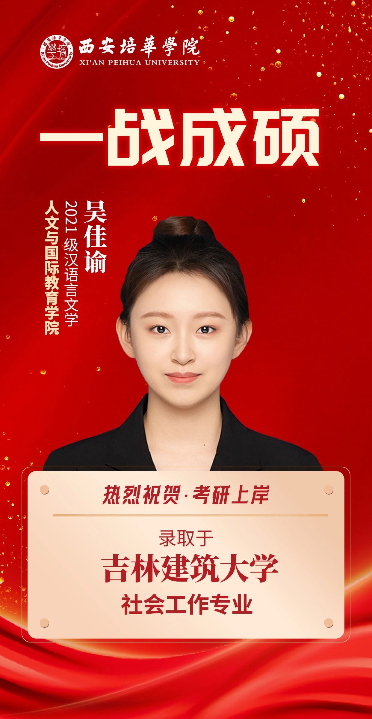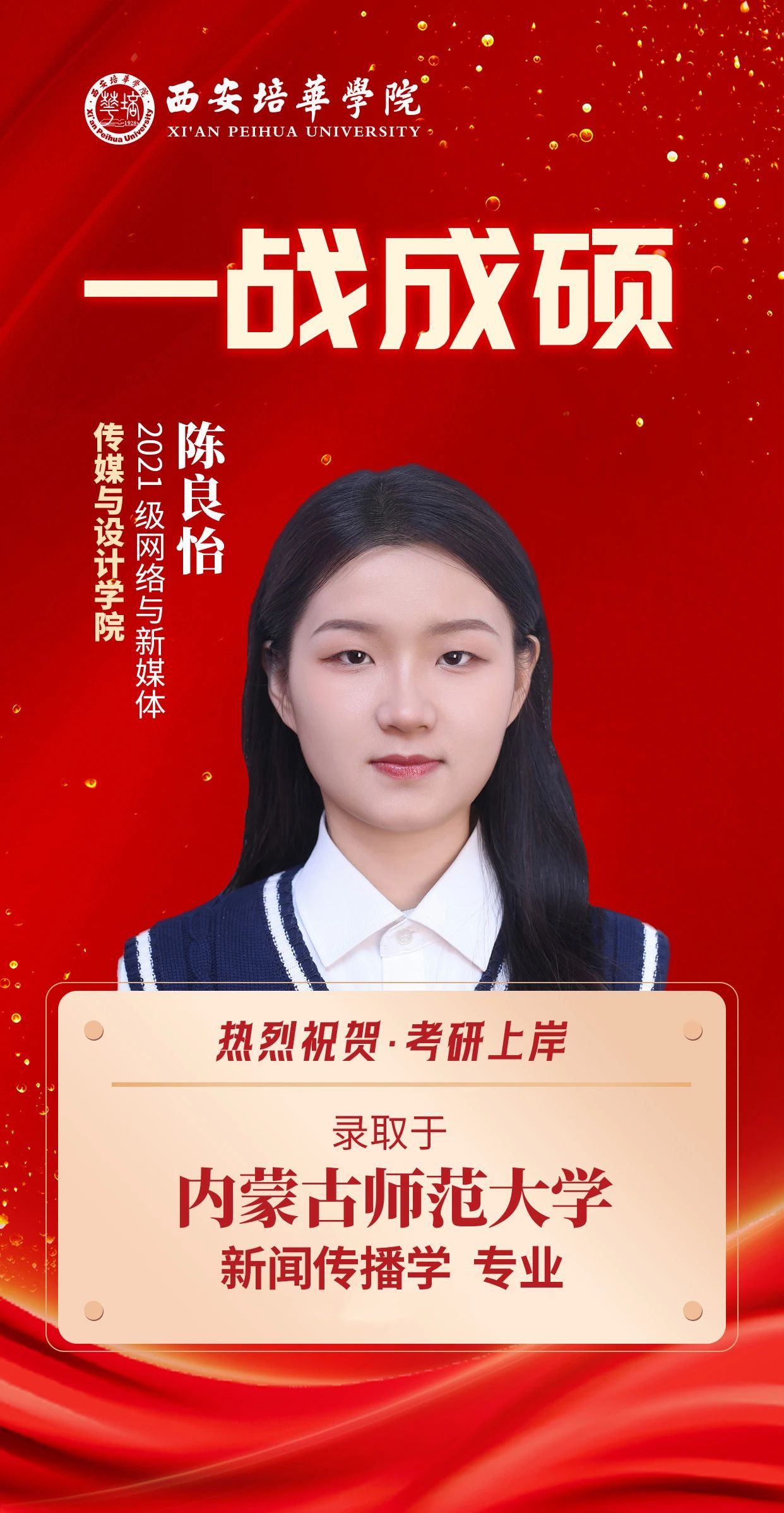 蝉鸣盛夏,硕果盈枝,培华捷报,再谱新章,2025届考研征途上,培华骄子以拼搏为笔,以信念为墨,践行“心有所向,行必能至”的奋斗箴言,一份份录取通知不仅镌刻着学子们挑灯夜读、披荆斩棘的坚实足迹,更是对西安培华学院“知行合一”育人理念的生动诠释。今天,跟随小编再次见证12位培华学子的荣耀时刻,感受从培华出发,奔赴更广阔未来的青春力量。