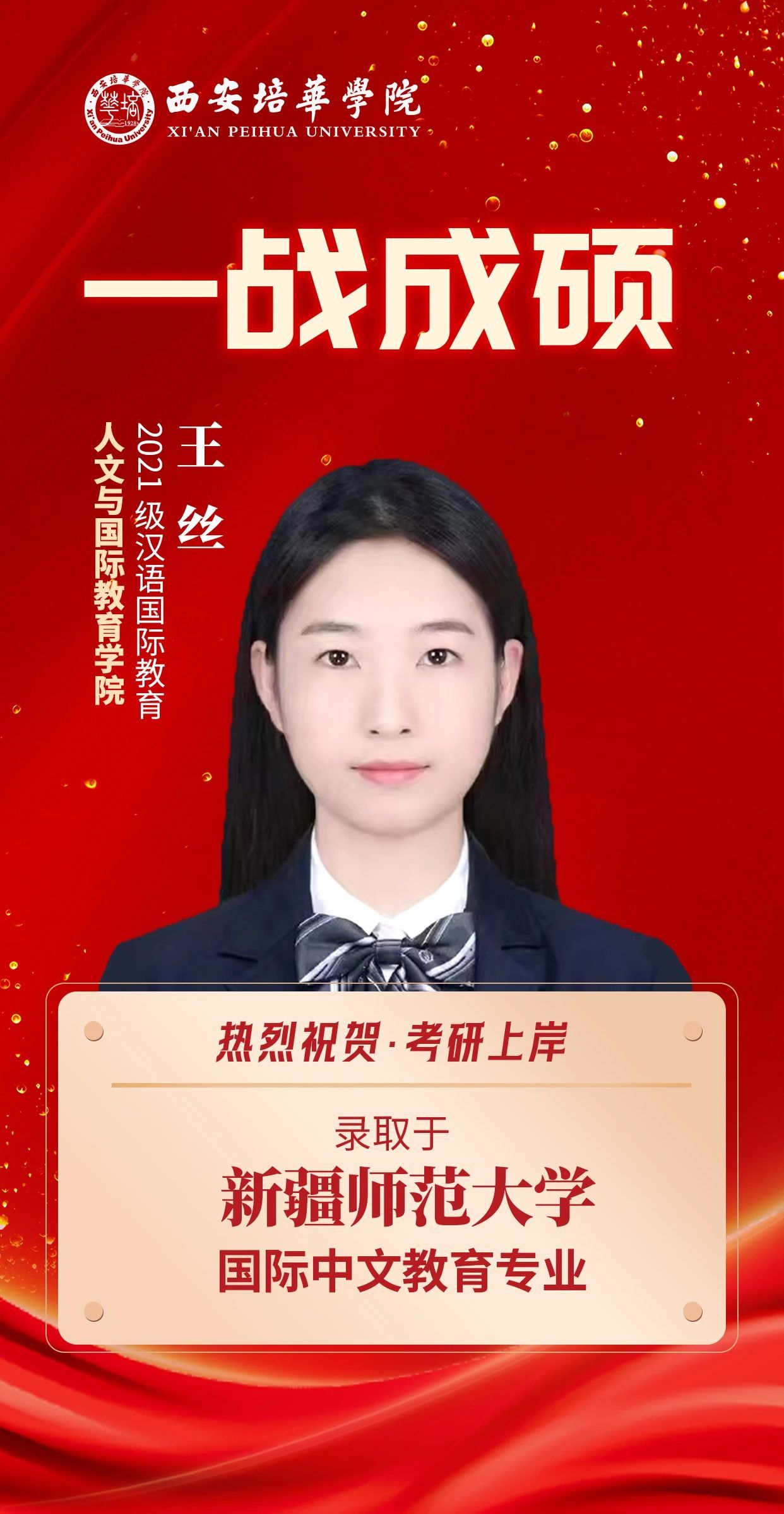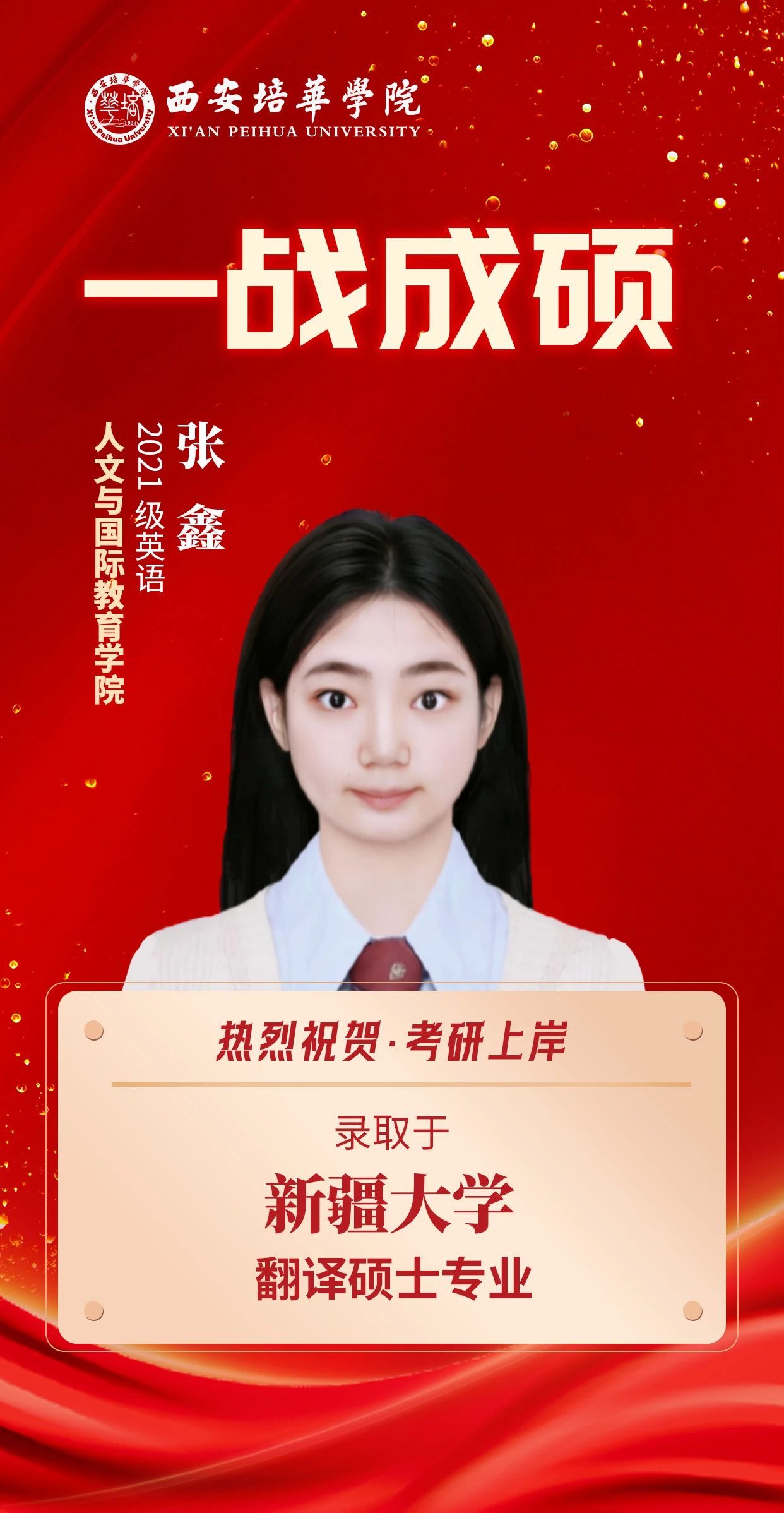 ——2021级英语 张鑫 考入新疆大学