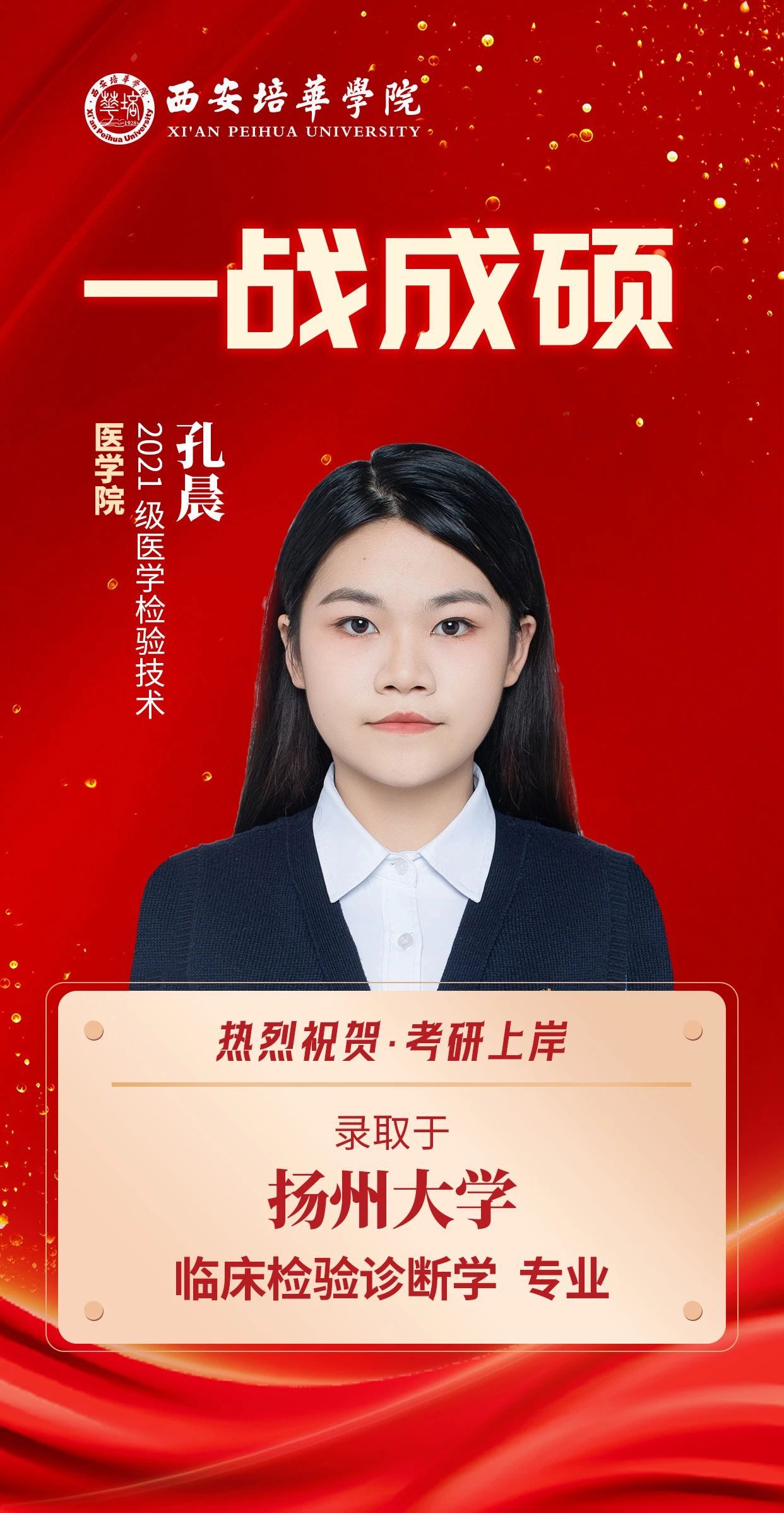 ——2021级医学检验技术 孔晨 考入扬州大学