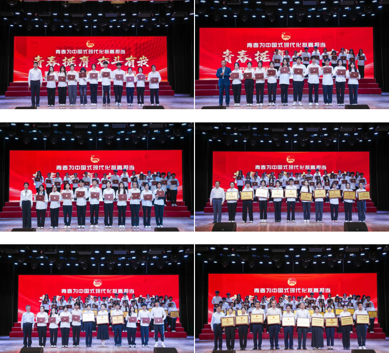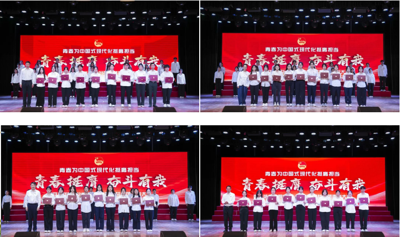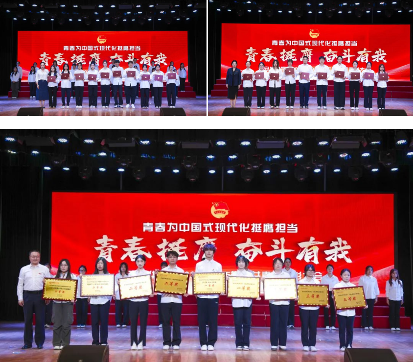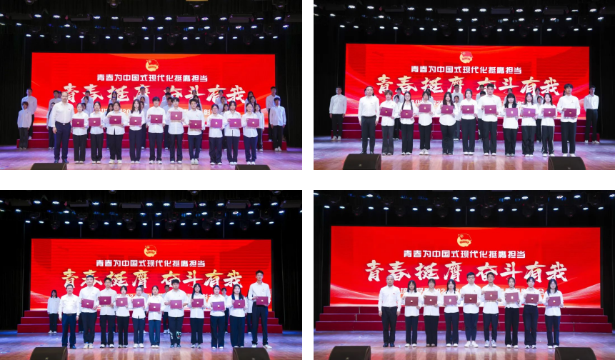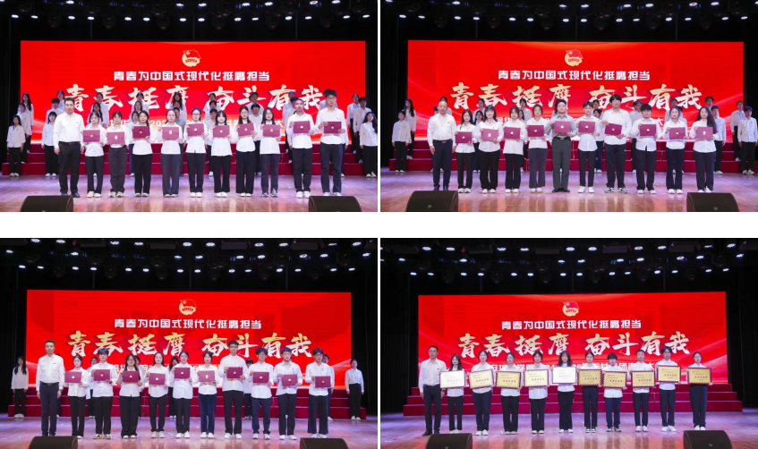 当晚,“青春挺膺 奋斗有我”2025年共青团表彰大会在大学生活动中心举行,理事长姜波致辞,副校长、党委副书记姚文静宣读表彰文件。校团委书记董莹主持。